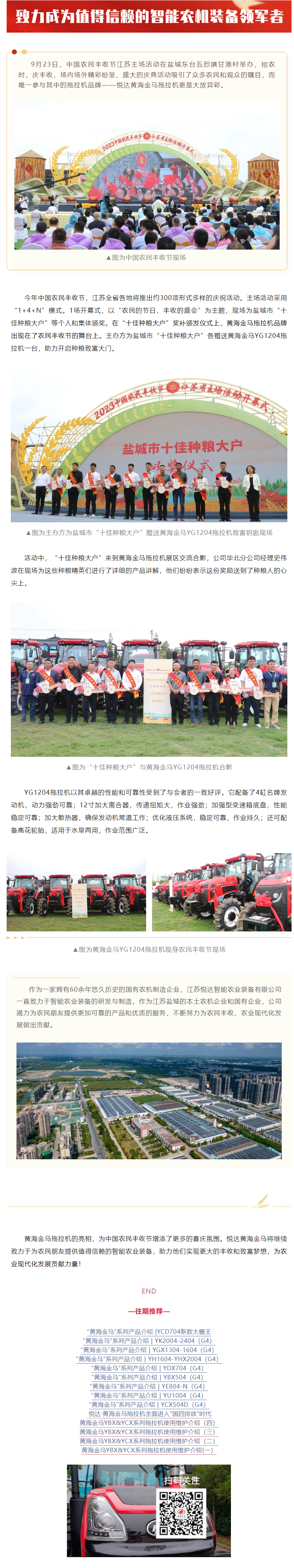 悦达黄海金马拖拉机亮相中国农民丰收节!